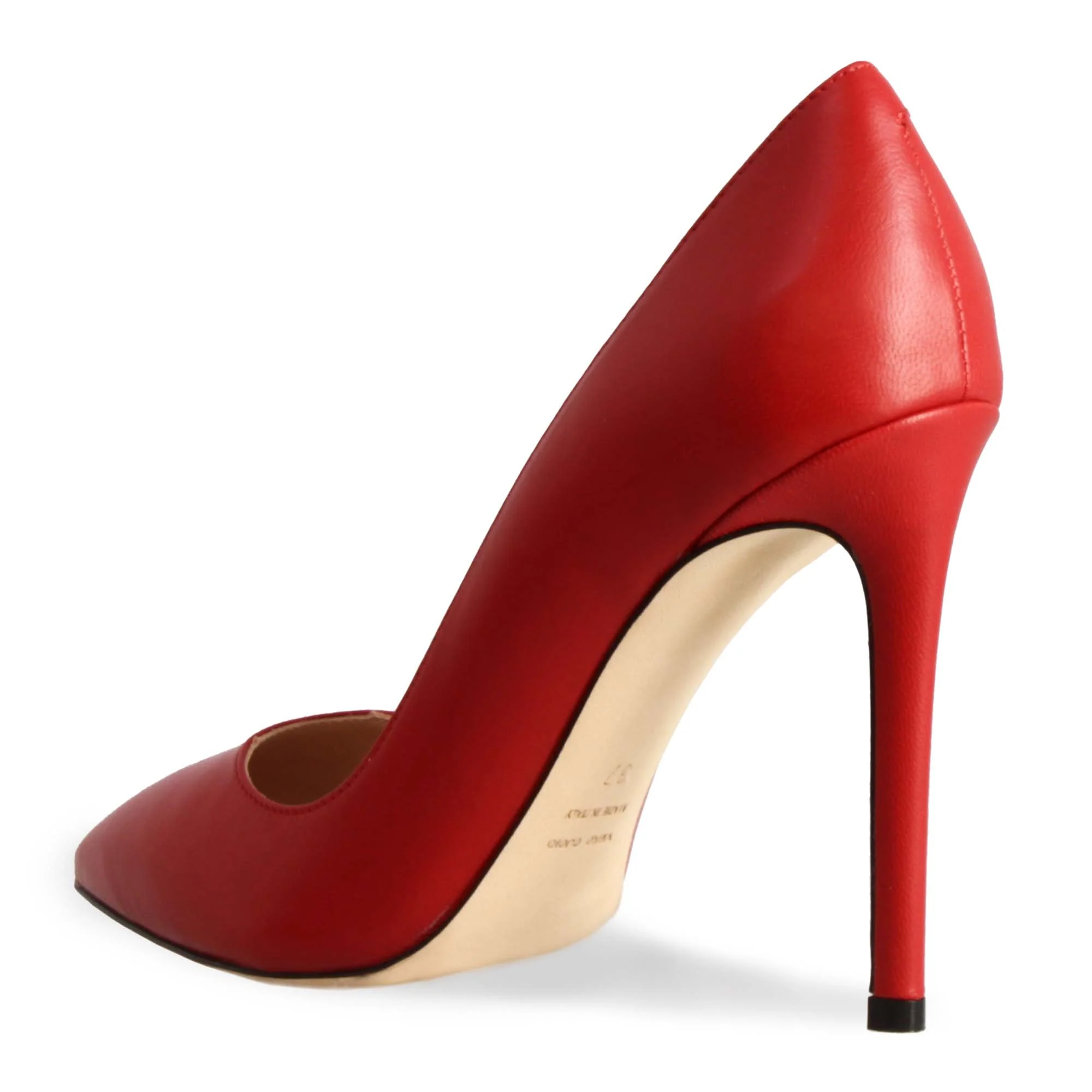 Décolleté con tacco alto eleganti da donna fatte a mano in pelle rossa
