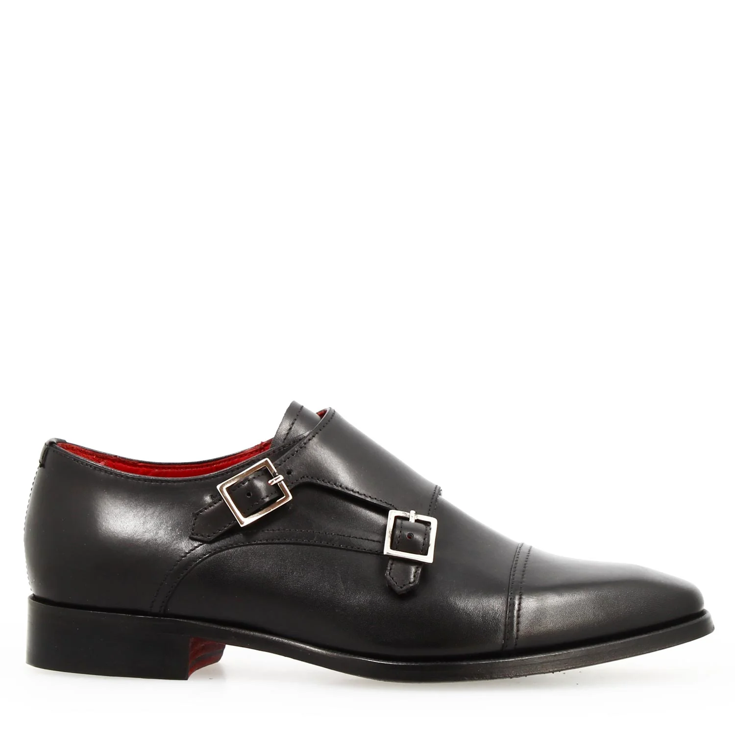 - Scarpa doppia fibbia nera in pelle pieno fiore