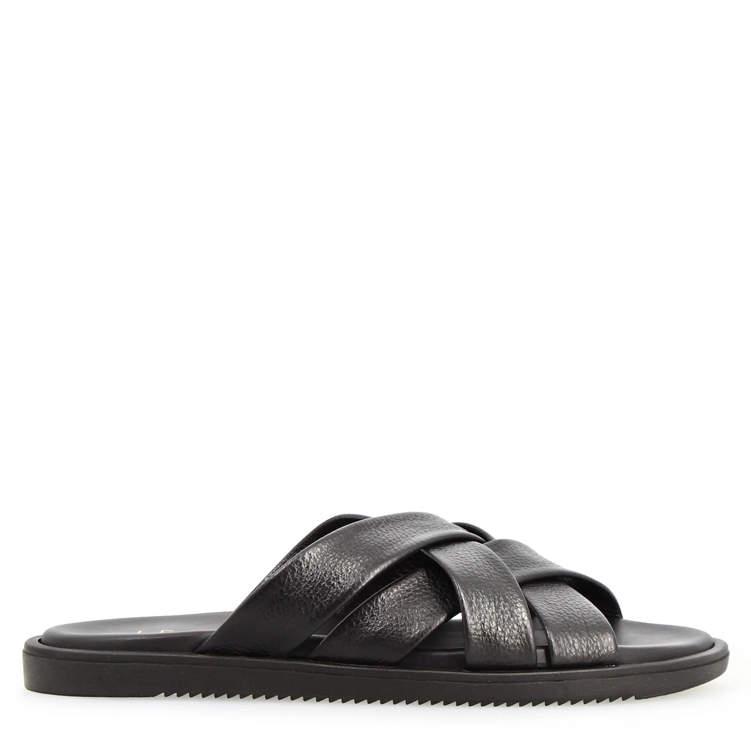 Il sandalo Perseo Nero da uomo esprime un equilibrio naturale tra comfort e materia pregiata. Realizzato in pelle bottalata nera, si distingue per morbidezza, elasticità e una texture autentica che valorizza la linea della calzatura.