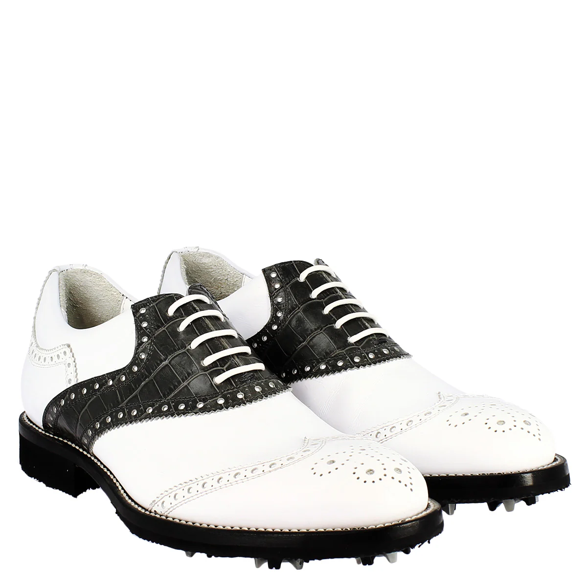 Scarpe golf unisex artigianali in pelle bianco e nero